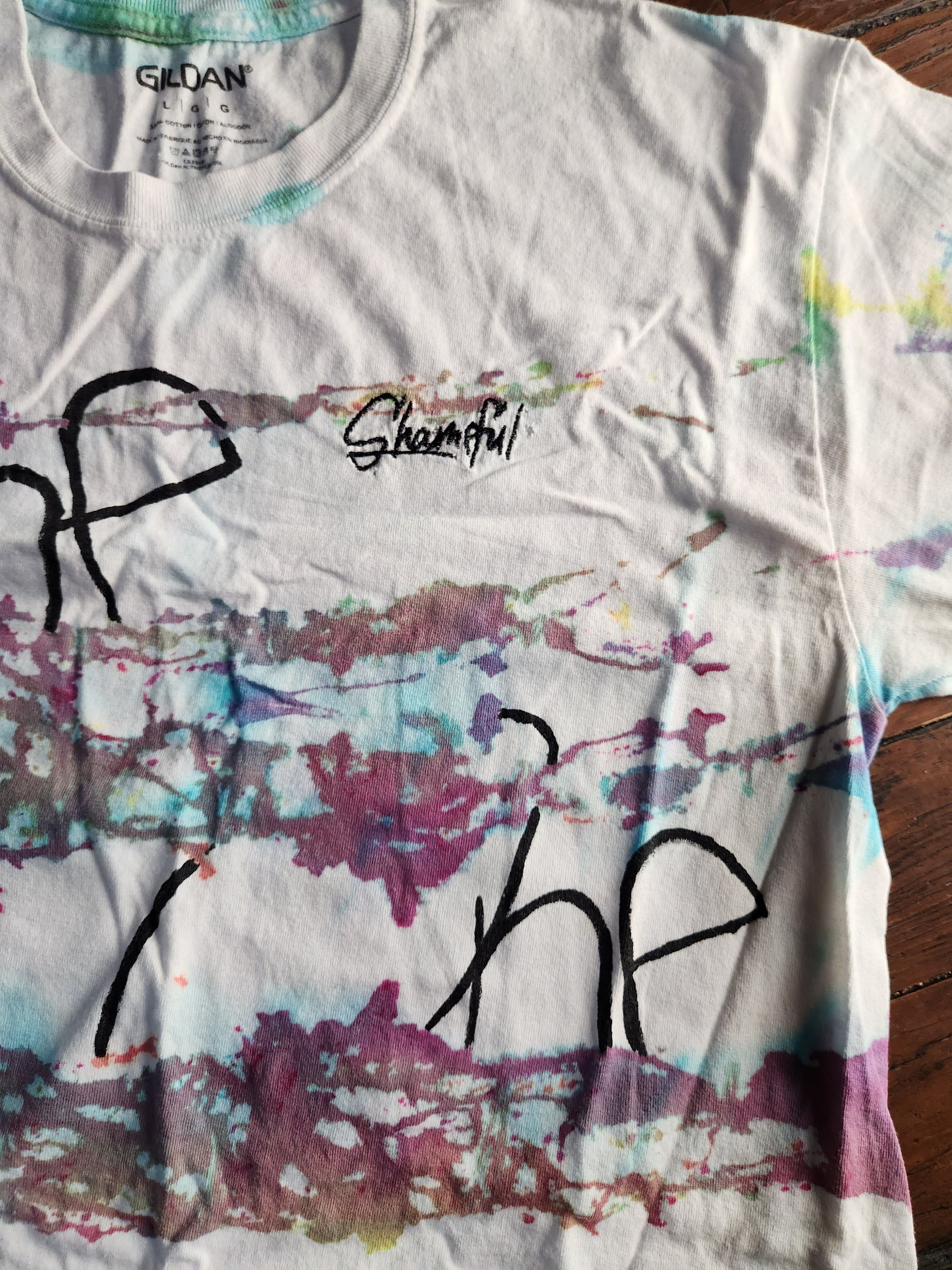 Jawbreaker tye dye design, hand painting flair and embroidered breast logo