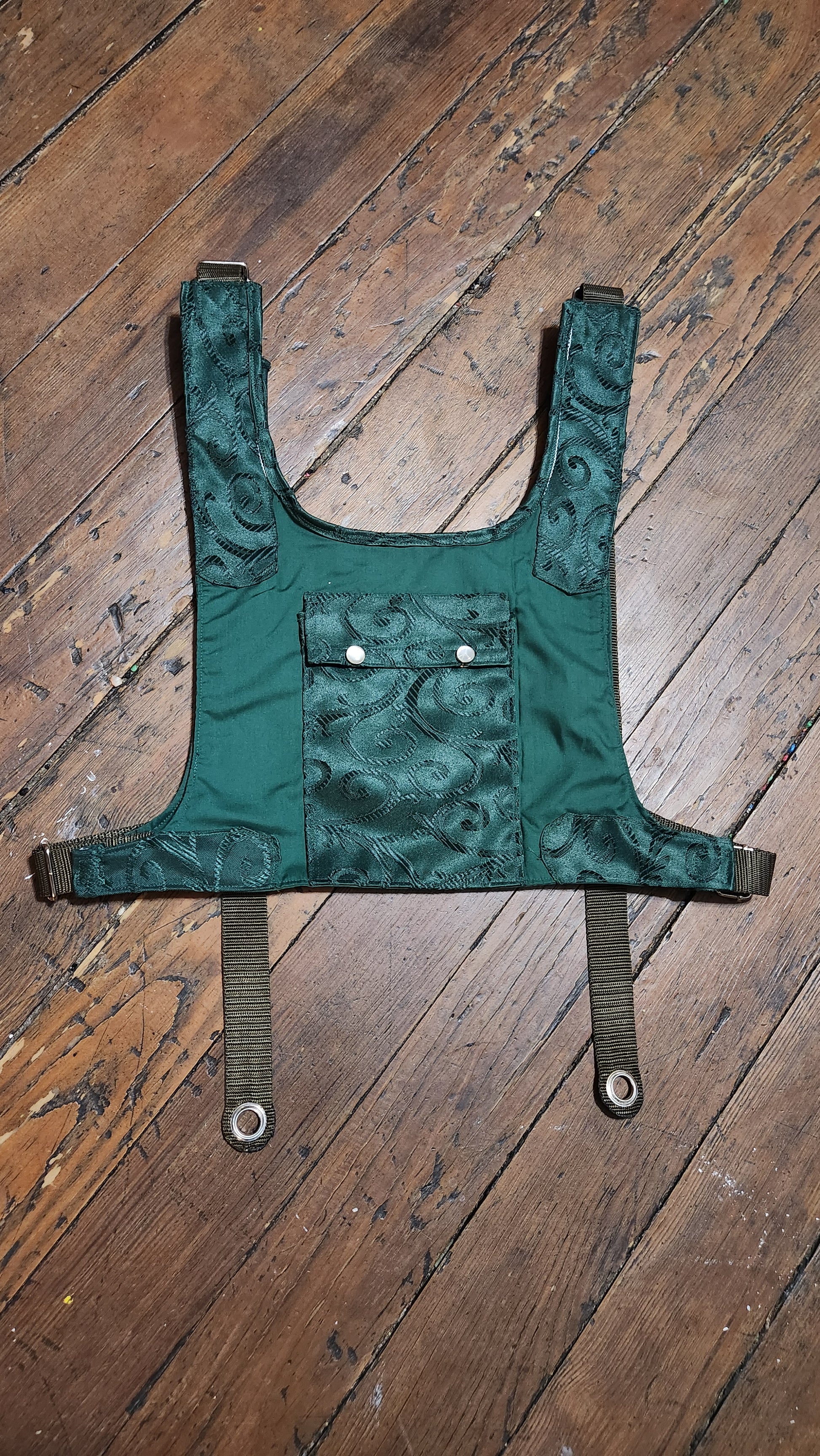 This Vest Bag features an original design inspired by elegant vests. Its low profile makes it perfect for layering, providing a sleek and functional solution for carrying your essentials while on the go. Stay stylish and organized with this unique chest bag.